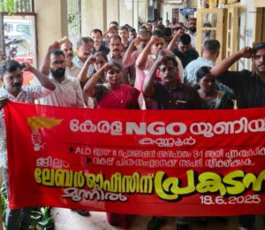 കണ്ണൂർ; തൊഴിൽ വകുപ്പിൽ അസിസ്റ്റന്റ് ലേബർ ഓഫീസർ സെക്കൻ്റ് ഗ്രേഡ് തസ്തികയിൽ സംസ്ഥാനത്ത് മുൻപ് ഉണ്ടായിരുന്ന 3:1 നിയമനാനുപാതം പുനസ്ഥാപിക്കണമെന്നും തൊഴിൽ മേഖലയിൽ വന്ന മാറ്റങ്ങളും ജോലിഭാരവും കണക്കിലെടുത്ത് വകുപ്പിന്റെ പുനഃസംഘടന നടപ്പാക്കണമെന്നും ആവശ്യപ്പെട്ട് സംസ്ഥാനത്ത് ലേബർ കമ്മീഷണറേറ്റിനും മുന്നിലും ജില്ലാ ലേബർ ഓഫീസുകൾക്ക് മുന്നിലും കേരള എംജിഒ യൂണിയന്റെ നേതൃത്വത്തിൽ ജീവനക്കാർ പ്രകടനം നടത്തി. കണ്ണൂരിൽ നടന്ന പ്രകടനം യൂണിയൻ സംസ്ഥാന സെക്രട്ടറിയേറ്റ് അംഗം എ എം സുഷമ ഉദ്ഘാടനം ചെയ്തു. ജില്ലാ പ്രസിഡന്റ് പി പി സന്തോഷ് കുമാർ ജില്ലാ സെക്രട്ടറി എൻ സുരേന്ദ്രൻ എന്നിവർ പ്രസംഗിച്ചു.